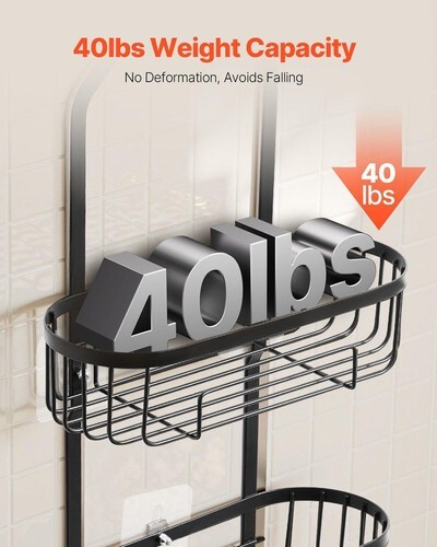 Supports Up to 40lbs: Made from high-strength materials with reinforced design, the shower storage easily holds multiple items without bending or falling, ensuring security and reliability