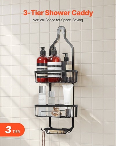 - Shower Caddy 3-Tier Hanging Bathroom Shower Storage Organization Shelves Rack