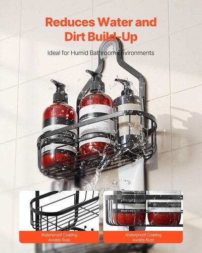 Rust-Proof and Durable: The shower rack's waterproof coating avoids rust. The hollow design at the bottom allows water to drain away, reducing water accumulation and enhancing durability