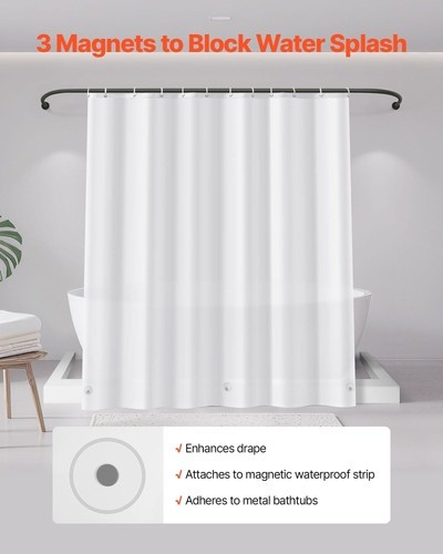 Magnetic Function: This weighted shower curtain includes magnets along the bottom hem to improve drape and reduce splashing. It can also attach to water barriers or metal bathtubs, offering better water control in the shower area