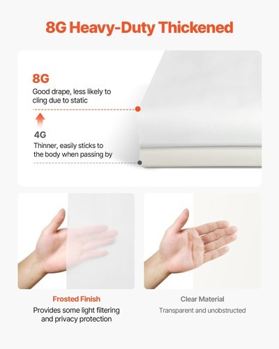 8G Heavy Type: Crafted from thick 8G PEVA, this shower liner hangs naturally and does not easily cling to the body. It provides light blurring and diffusion, and works best when paired with a polyester curtain for added privacy
