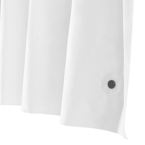 This heavy-duty 8G PEVA curtain features excellent water repellency and a smooth surface that allows water to glide off. The weighted hem includes magnets for metal tubs. The frosted texture feels soft and adds privacy. Not machine washable. Hooks not included.