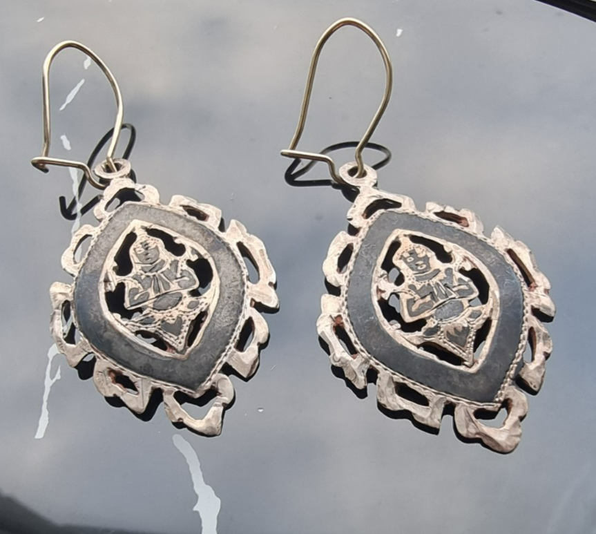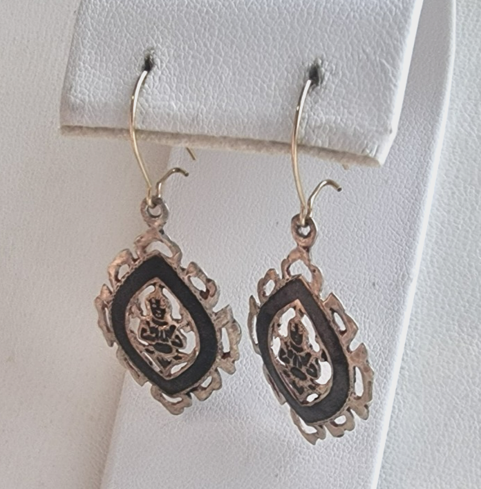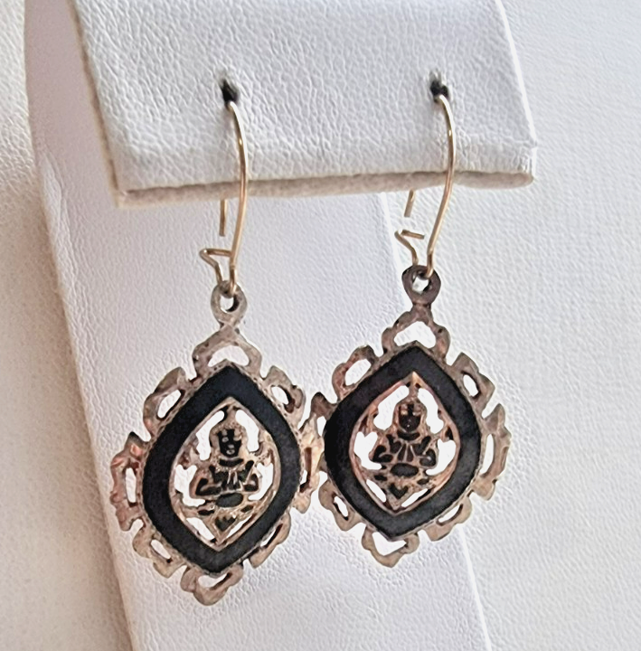 - SIAM VINTAGE 925 STERLING SILVER BLACK ENAMEL DANGLE EARRINGS
