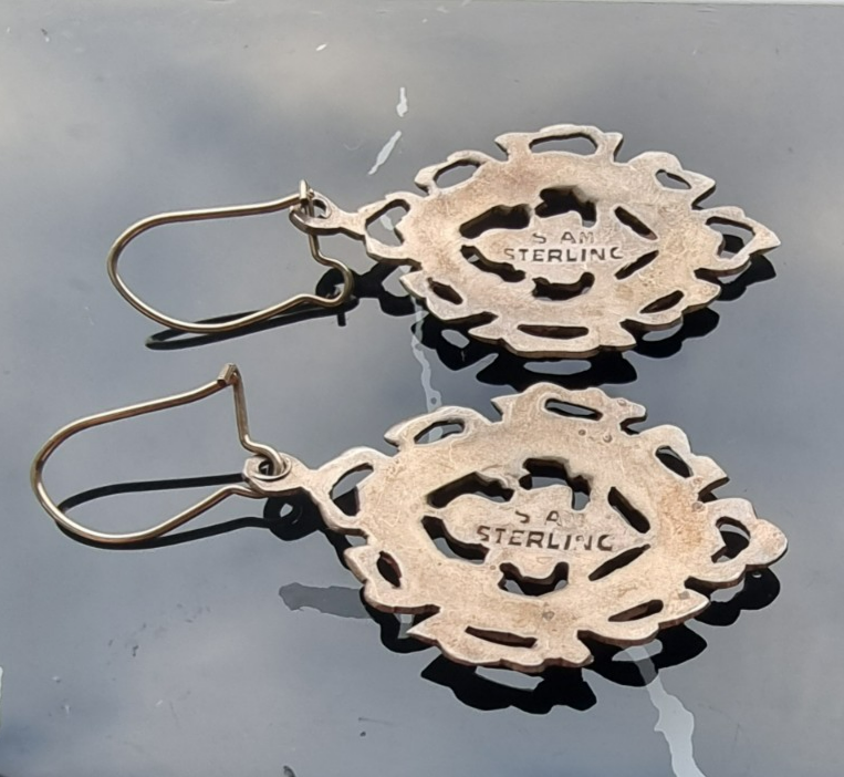 SIAM VINTAGE 925 STERLING SILVER BLACK ENAMEL DANGLE EARRINGS