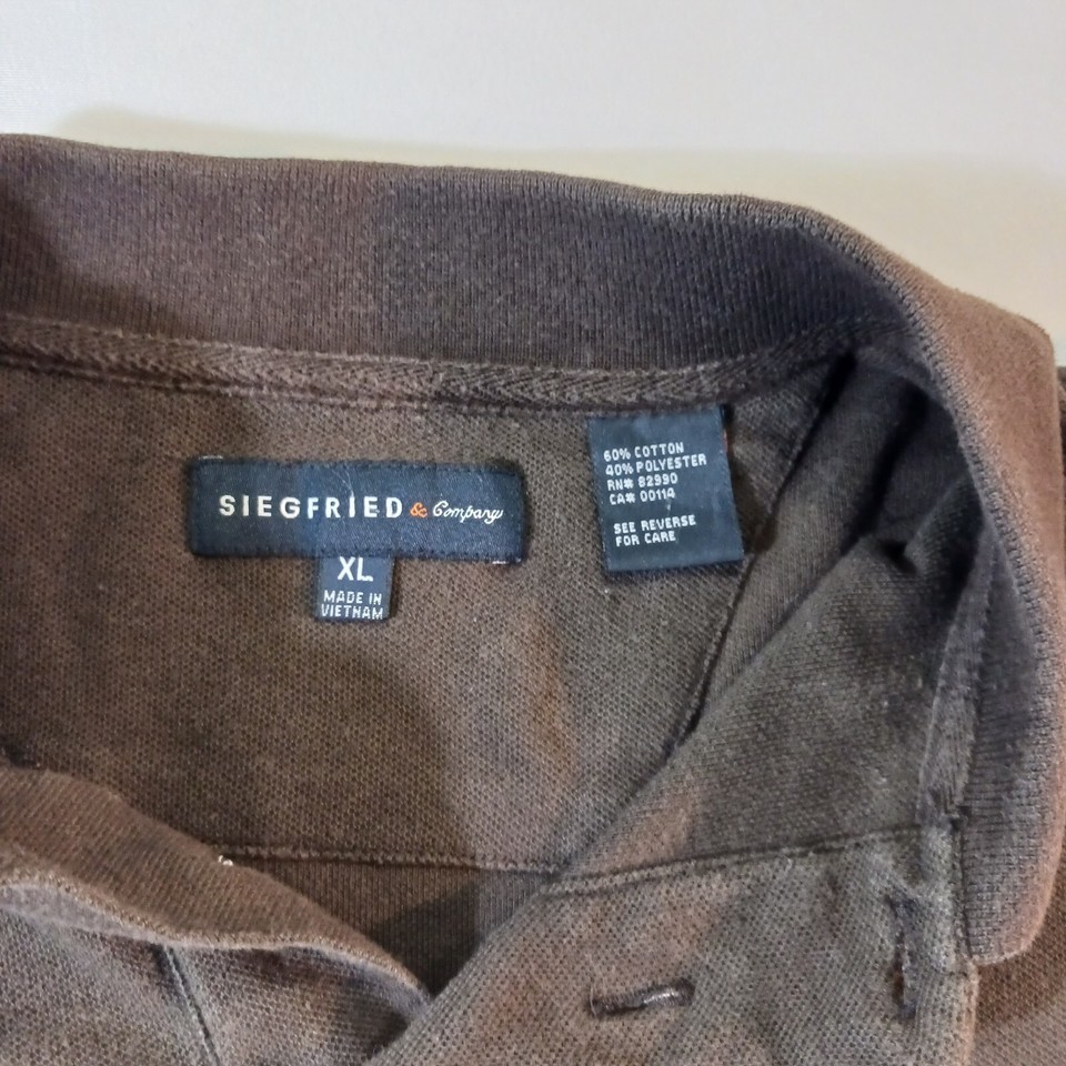 - Siegfried & Company Men's Brown Cotton Blend Long Sleeve Polo Shirt Size XL
