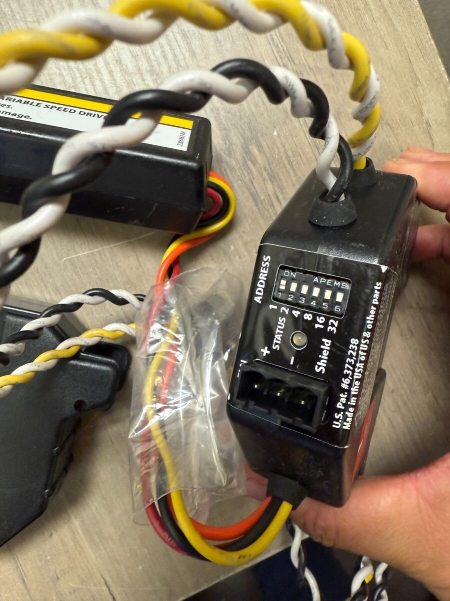 Uses a 3?pin removable terminal block for FLN connection and has DIP switches to set the FLN address plus a bi?color status LED for normal/fault indication.