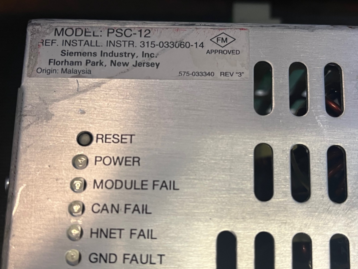 - Siemens PSC-12 FireFinder Power Supply 12A 24VDC Charger
