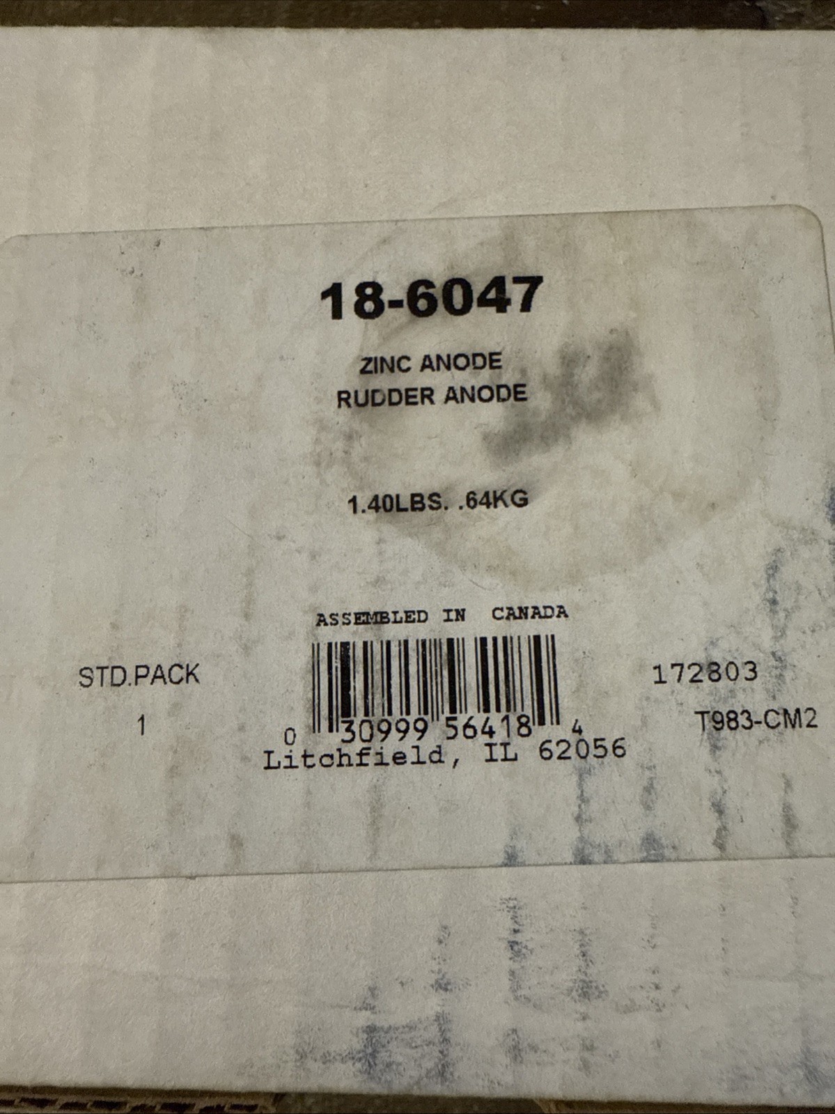 The Sierra Zinc Anode 18-6047 is a high-quality boat part designed to protect the engine and boat from corrosion. Manufactured by Sierra, this anode is specifically designed to fit the manufacturer part number 18-6047. It is an essential component for maintaining the overall performance and longevity of the boat's engine. Designed to withstand harsh marine environments, this zinc anode provides a reliable solution for preventing corrosion and ensuring smooth operation of the boat's engine.
