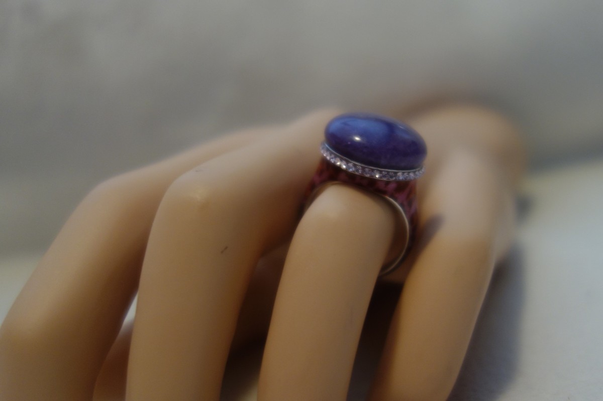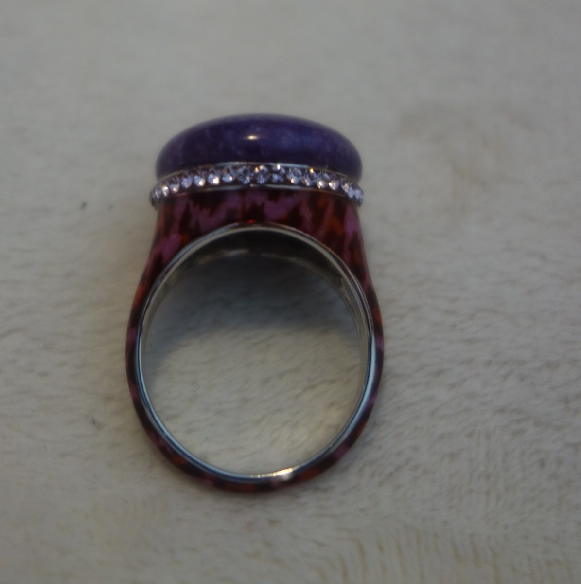 - Sigal Ring Genuine Crystal & Jade in Three Tone Enamel 925 Sterling silver sz 8