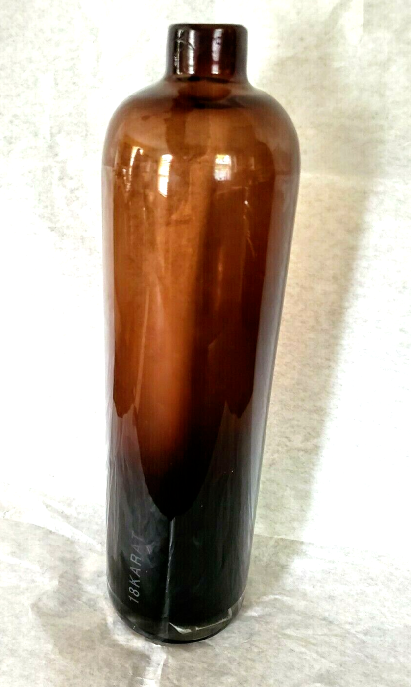 - Signature 18 KARAT Handblown Art Glass Bottle Brown Vase NWT