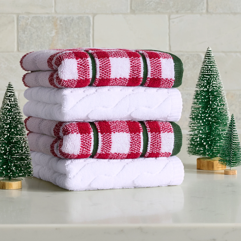 - Signature Soft Holiday Decor 4PK Hand Towel, Red Plaid