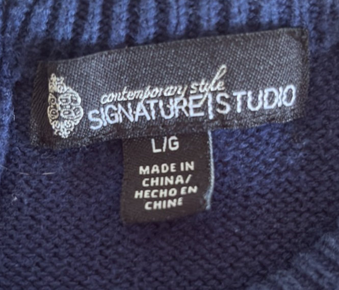 - Signature Studio Navy Blue Sweater with Back Zipper Size L