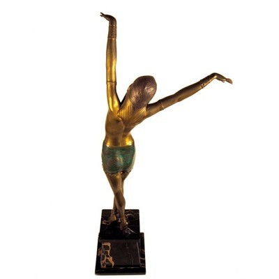 Demetre Haralamb Chiparus (also known as Dumitru Chiparus) (16 September 1886, Dorohoi, Romania - 22 January 1947, Paris, France) was a Romanian Art Deco era sculptor who lived and worked in Paris. Sculptures of Dimitri Chiparus represent the classical manifestation of Art Deco style in decorative bronze sculpture. Traditionally, these factors of influence over the creative activity of the artist can be distinguished: Serge Diaghilevs Ballets Russes, ancient Egyptian art, and French theatre. Early motion pictures were among his more notable subjects and were typified by figures with a long, slender, stylized appearance. Some of his sculptures were directly inspired by Russian dancers.