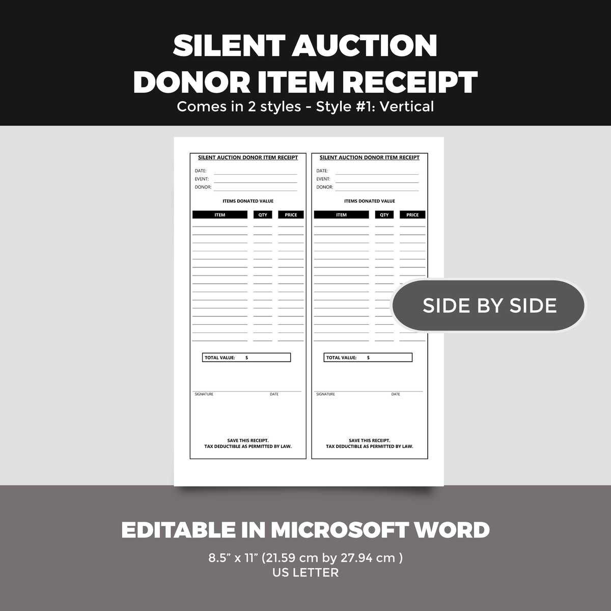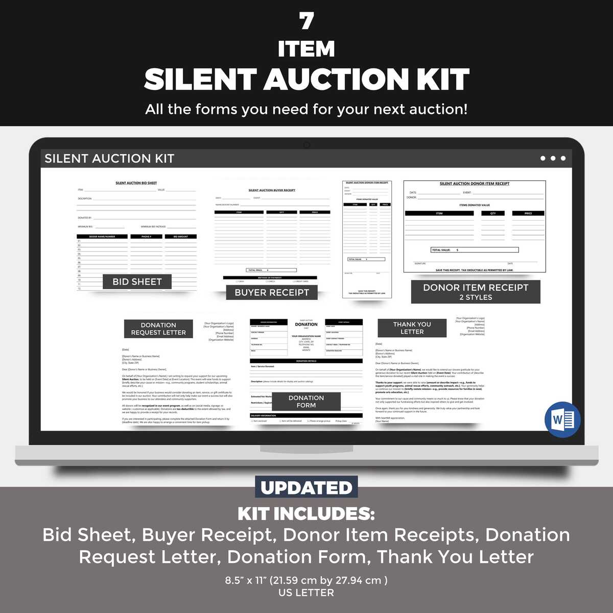 - Silent Auction Kit: Bid Sheet, Donor & Buyer Receipts (Microsoft Word)