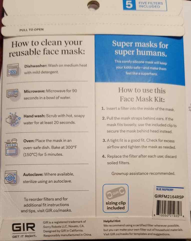 - Silicone Mask Kit Blue Raspberry Reusable Not Rated Kids All-purpose Safety Mask