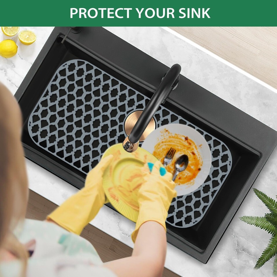 - Silicone Sink Mat Protector for Kitchen Farmhouse Sink 28" x 14.4" Grid