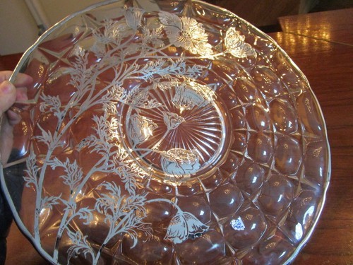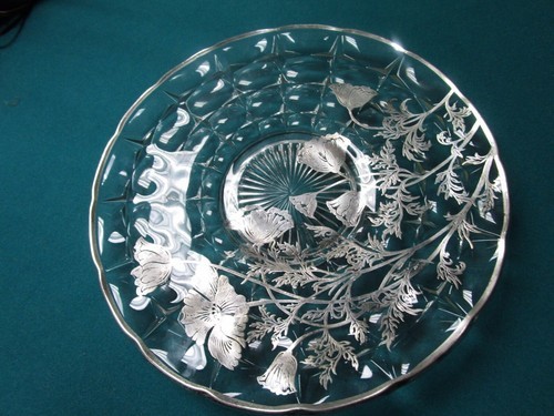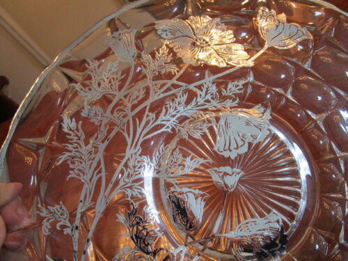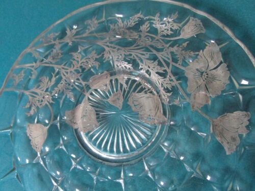 - Silver City sterling overlay large round tray Flanders Poppies, 13" diam [a*5C]