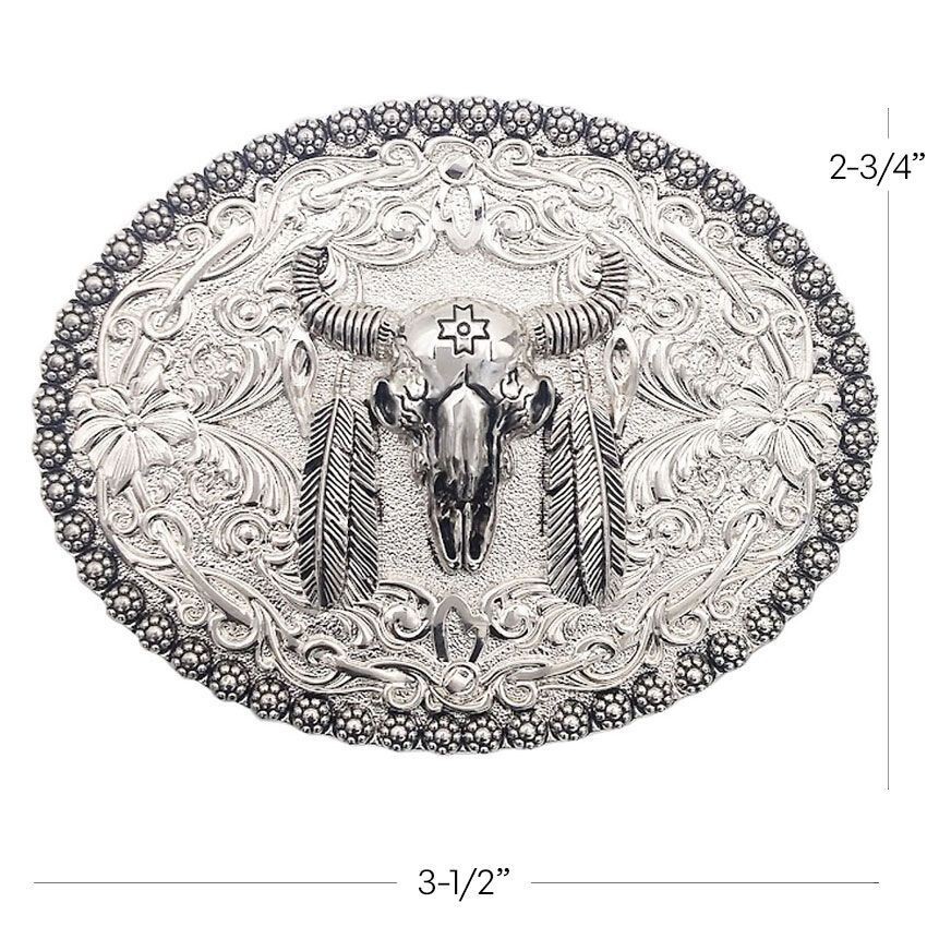 Elevate your style with this stunning silver belt buckle featuring a feathered full design and a unique bull motif. Crafted from high-quality metal, this accessory adds the perfect finishing touch to any outfit. The buckle also comes with a chic buckle accent that perfectly complements the overall design.