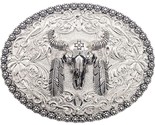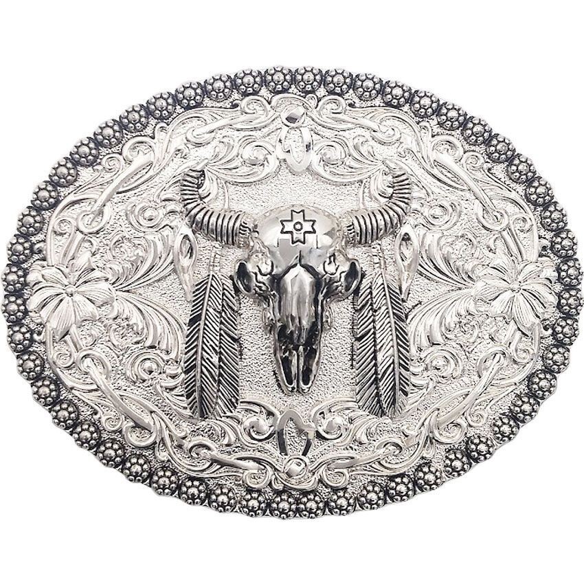 - Silver Featherred Bull Design Silver Metal Belt Buckle