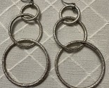 Silver Hoop Textured Dangle Earrings 2.5”