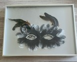 - Silver ~ Metal Framed Print ~ Masquerade Feather Mask Behind Glass Wall Hanging