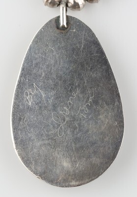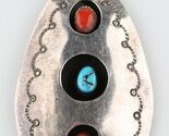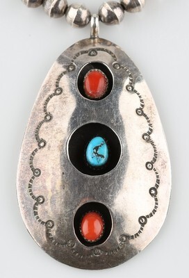 - Silver Navajo Shadow Box Pendant w/ Turquoise and Coral Cabochons & silver Beads