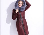 - Silver Russian Fox Fur Hooded Collar Long Sleeves Plush Lined Faux Leather Coat
