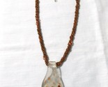 It is a nice size (2 1/2 inches long X 1 3/8 inch across) comes on a 16 INCH 4 strand BROWN SEED BEAD TWIST NECKLACE