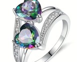 - Silver ~ Stainless Steel ~ Heart Shaped Crystals w/Faux Diamonds ~ Size 10 Ring
