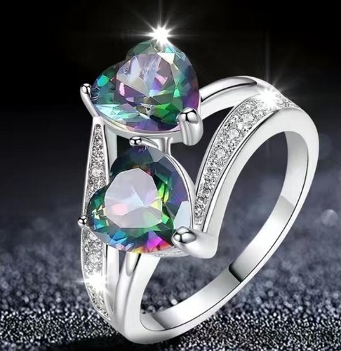 Silver ~ Stainless Steel ~ Heart Shaped Crystals w/Faux Diamonds ~ Size 7 Ring