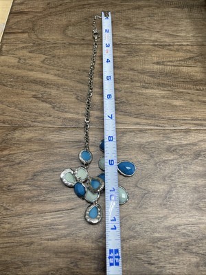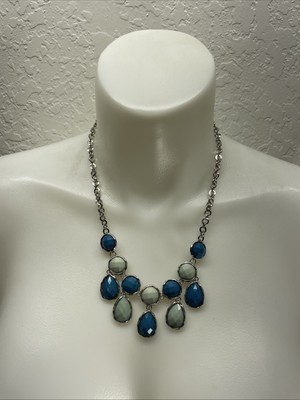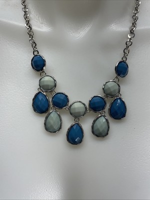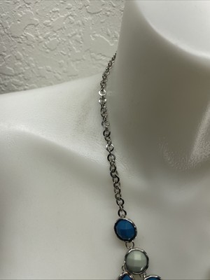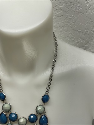 - Silver Tone Blue Aqua Charms Bib Necklace Statement Piece Estate Jewelry KG JD