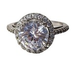 - Silver Tone Halo Cocktail Ring Band 925 CZ Round Rhinestones Size 8.5 Gift