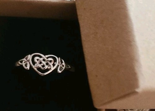 - Silver-Tone ~ Heart ~ Celtic Design ~ Women's Size 11 ~ Petite ~ Thin Band Ring