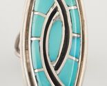 - Silver Turquoise and Onyx Lapidary Inlay Ring Size 5.25 Gorgeous Craft