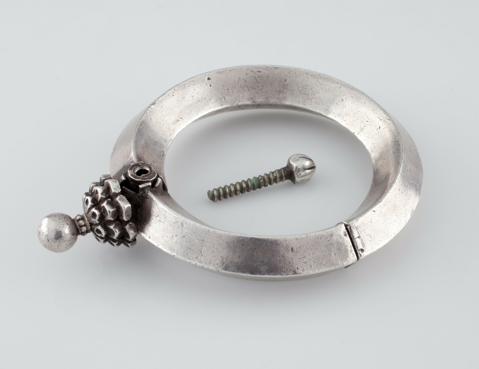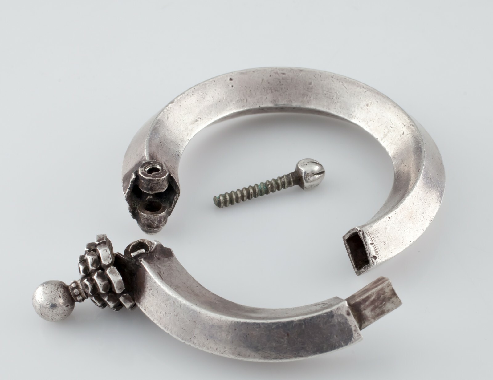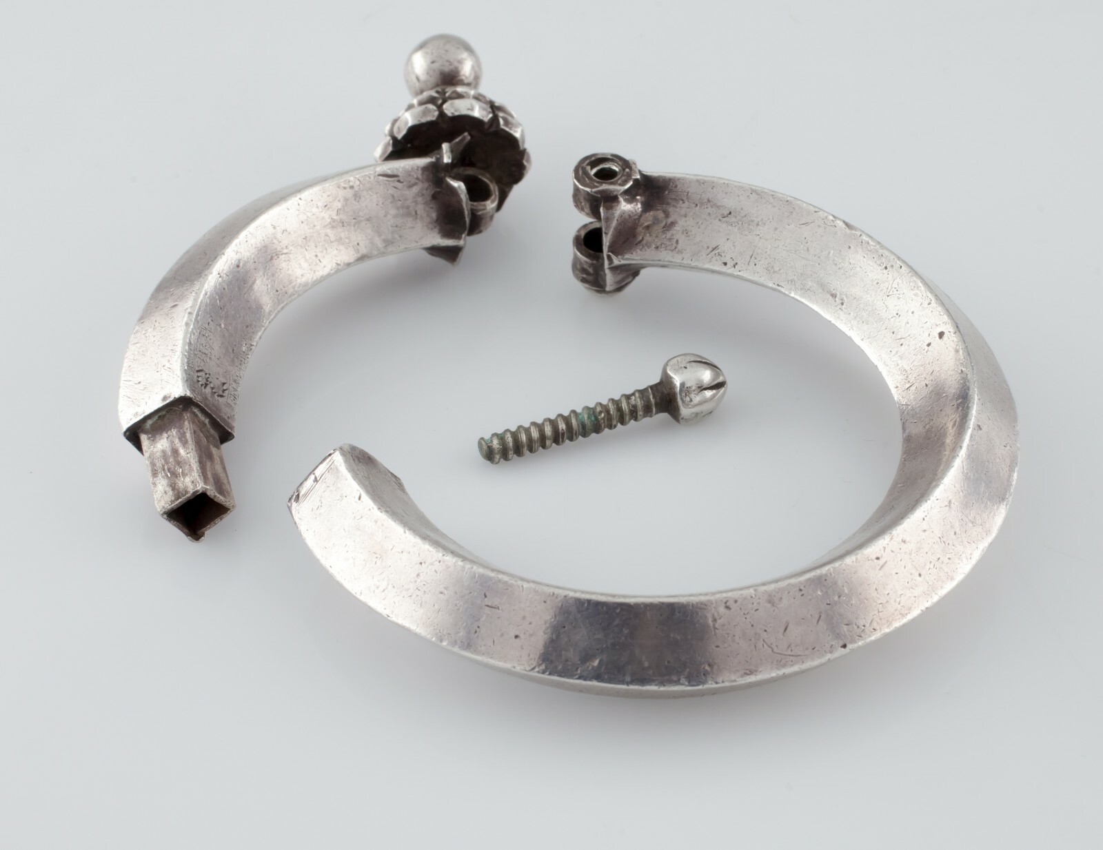 - Silver Vintage Indian Bracelet w/ Screw Clasp and Hinge Gorgeous