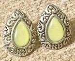 - Silver Yellow Teardrop Earrings Distressed 3/4 Inch No Backs