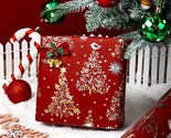 Christmas Wrapping Paper. Shiny metallic gold and silver swirl Christmas Tree on red nongloss(low sheen) background. Short roll, 17" tall x 32.8" long. New, direct dropship from supplier.