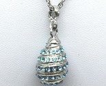 - Silver and blue Egg Pendant Necklace with crystals by Keren Kopal