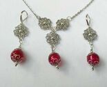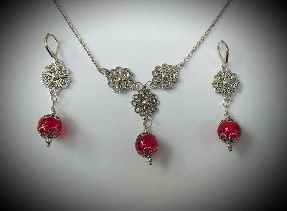Silver Red Victorian set necklace earrings Bohemian necklace and earrings .