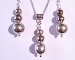 - Silver triple ball jewelry set Boho set modern art set Silver pendant set three