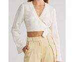Cut from a breathable linen blend, this long-sleeved top is designed in a wrap silhouette for easy styling.