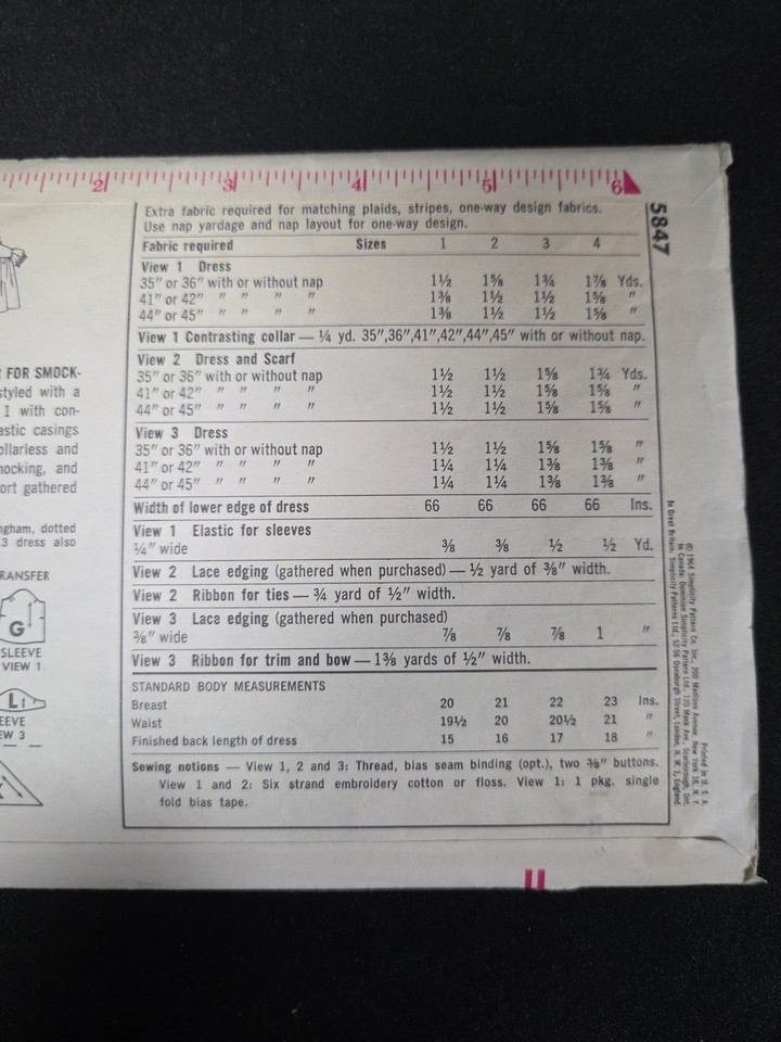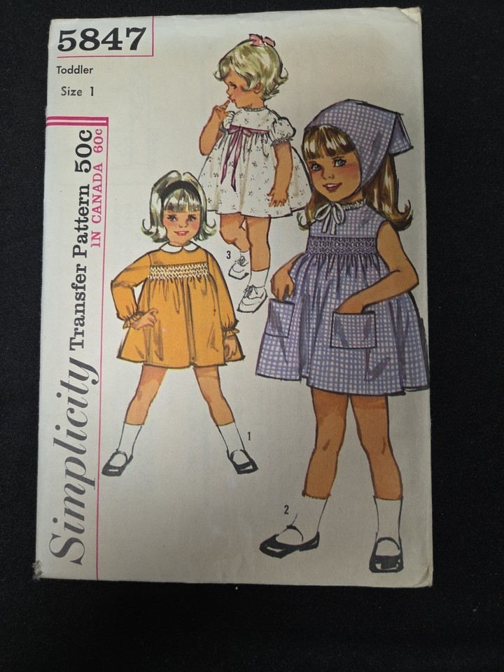 Simplicity Sewing Pattern #5847 Children's Dress Size 1 1960s Vintage Cut. Condition is Used. Shipped with USPS Ground Advantage.