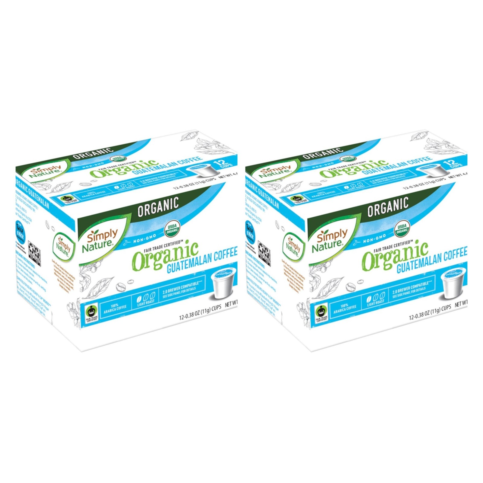 - Simply Nature Organic Guatemalan Coffee Pods – Light Roast, 2 Boxes (12ct Each)