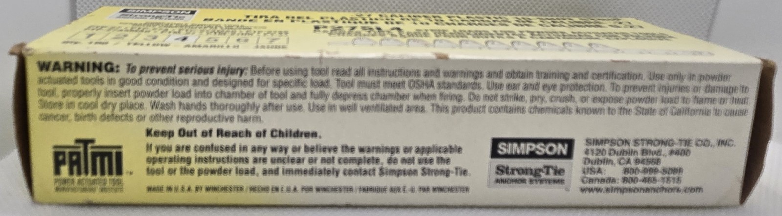 - Simpson Strong-Tie ~ P27SL4 .27 Cal. Plastic 10-Shot Strip ~ Loads Yellow