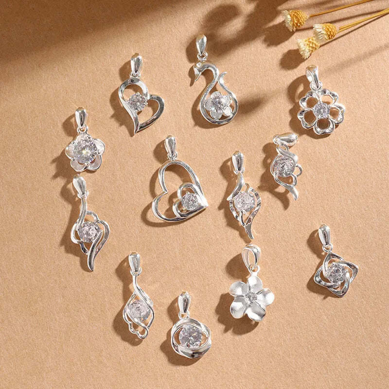 Single Pendant Zirconia Necklace For Girls Pure Silver 999 Sterling Silver Choke