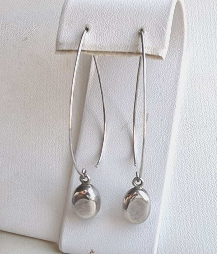 SIPADA 925 STERLING SILVER LONG DANGLE THREADER EARRINGS LARGE ACCENT DROP HOOPS