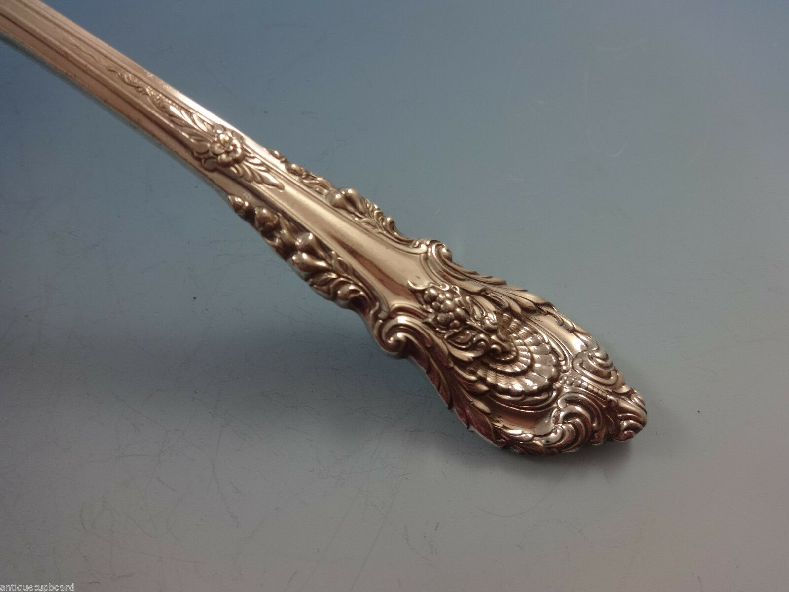 A mood of grandeur is captured in this English Renaissance style pattern interpreted from the designs of architect Sir Christopher Wren. Earth's bounties are depicted through grape clusters on the knife, fruits on the fork and a rose on the spoon.