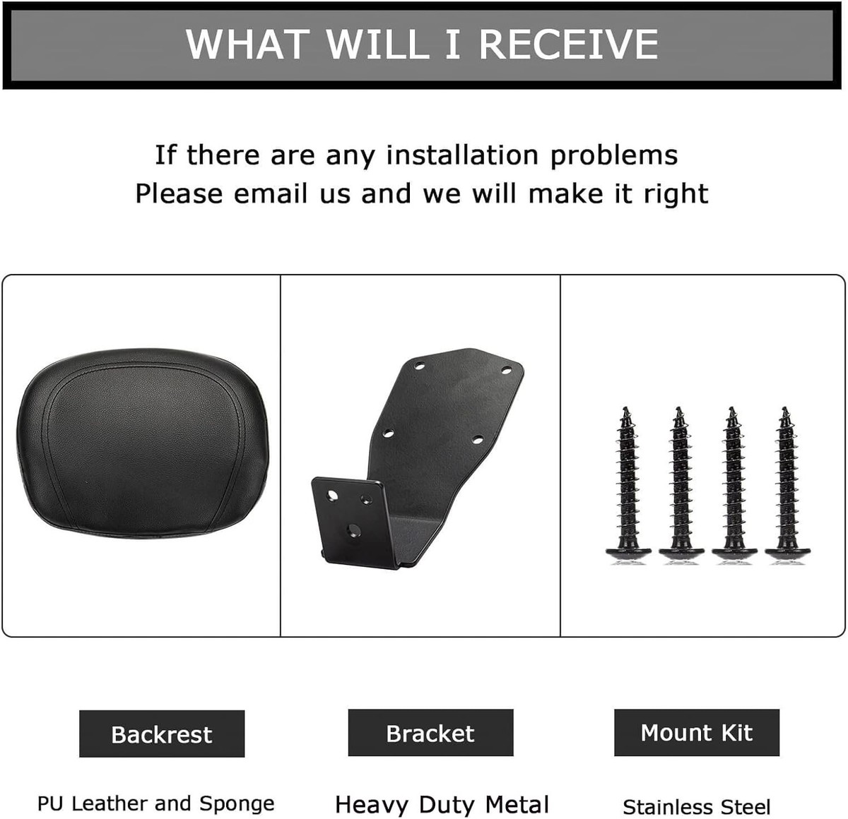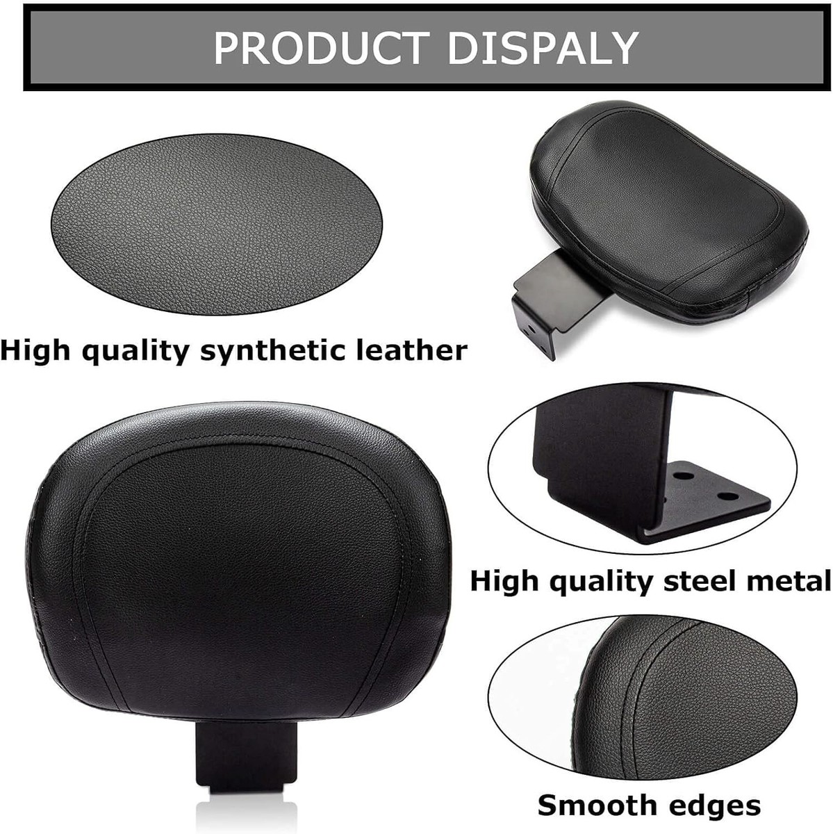 Provides added comfort and lower-back support for long-distance riding. High-quality synthetic leather with foam padding, smooth stitching, and a sturdy steel mounting plate designed to bolt directly to the stock seat pan.