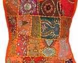 - Sitara Work Patches Cushion Cover Home Decor case 16"x16" Size (Orange)