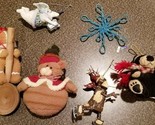 Six (6) Holiday Handcraftef Decorations ~ Bear ~ Reindeer ~ Gingerbread....